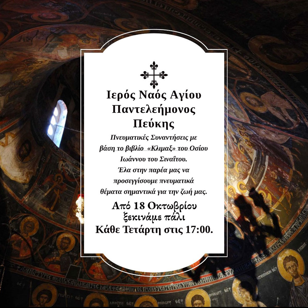 Πνευματικές Ομιλίες κάθε Τετάρτη στις 17:00